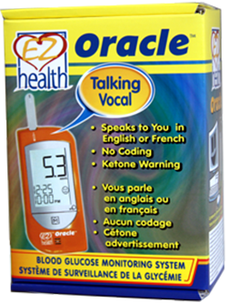La fonction vocale optionnelle du lecteur EZ Health® Oracle® vous guide dans les étapes pour mesurer votre niveau de glycémie, et les bandes font de même à la fois pour l’EZ Health® Oracle® et l’EZ Health® Oracle® OnyxMC .